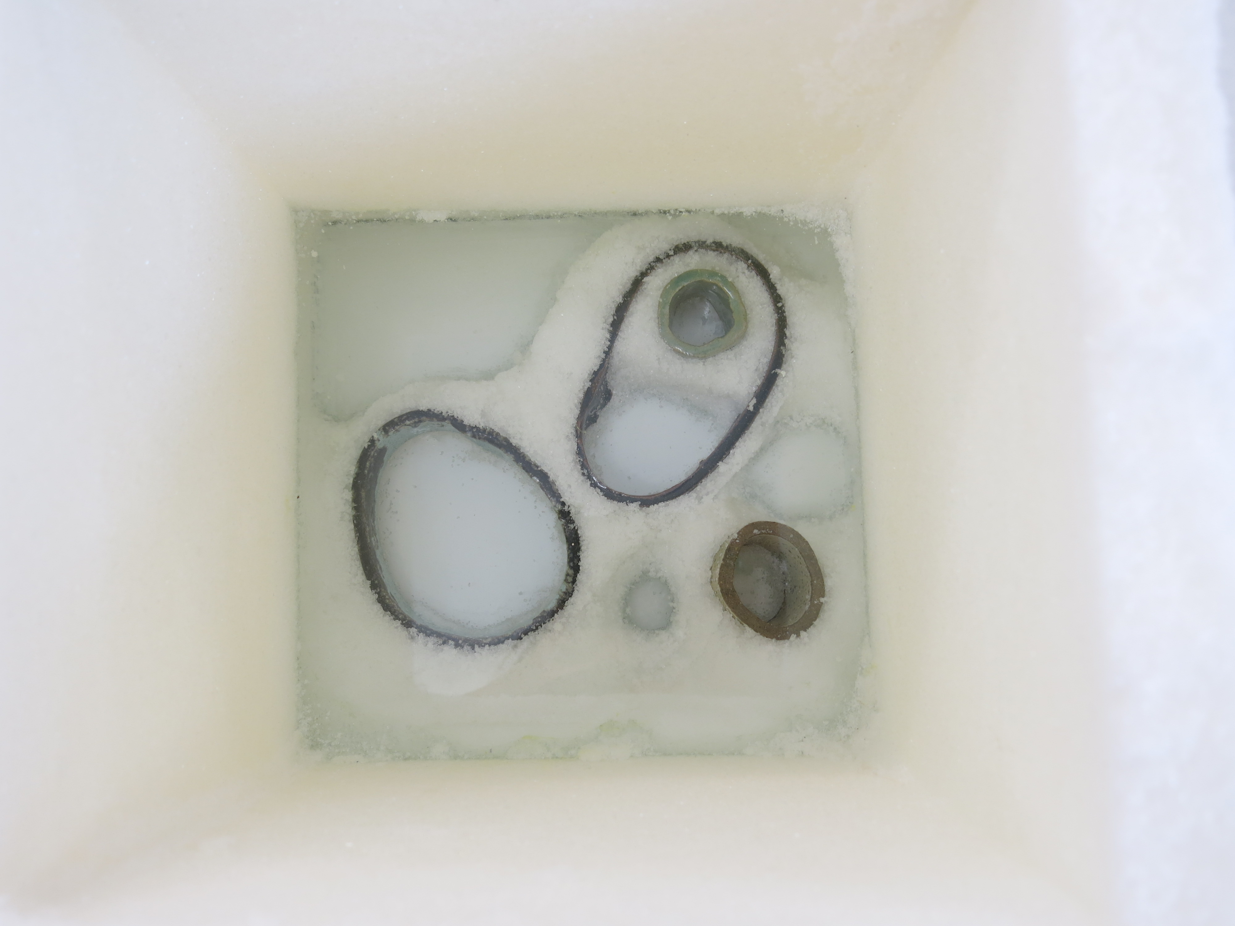 Four plinths and two photographs